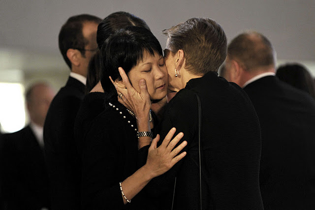 TORONTO, Ont (26/08/2011) - Olivia Chow greets visitors at her late husband Jack Layton's lying-in-repose at Toronto City Hall. Photo by Chloƫ Ellingson.