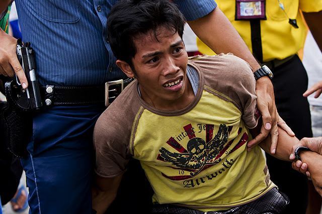 A suspected pickpocket is arrested by police during the 32nd Kaliga festival in Gingoog City. Photo By Melchizedek Maquiso